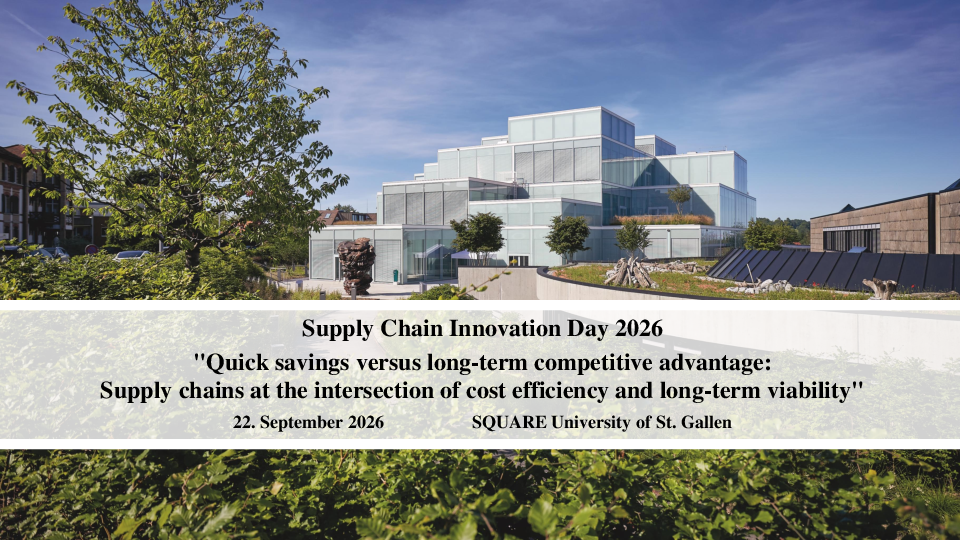 Against the backdrop of persistent uncertainties, companies today face a fundamental trade-off: achieving short-term cost savings without jeopardizing the long-term competitiveness of their supply chains. In light of this, the flagship event of the Institute for Production and Supply Chain Management (PSCM-HSG) in 2026 will be held under the motto "Quick savings versus long-term competitive advantage: Supply chains at the intersection of cost efficiency and long-term viability". Follow us on LinkedIn to always receive the latest information on the Supply Chain Innovation Day (SCID) 2026.